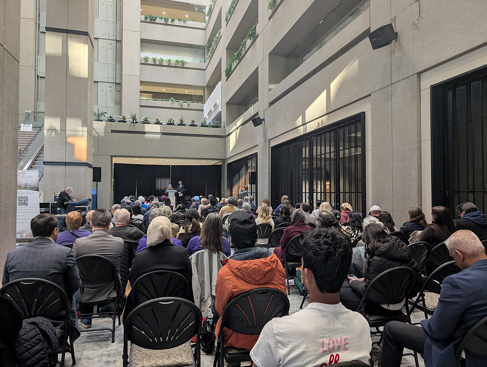 More than 100 people from various religious and spiritual communities gathered at Calgary City Hall on February 1 to open United Nations World Interfaith Harmony Week 2026, celebrating this year’s theme, Confluence of Faiths. Elders, youth, families, and faith leaders walked together in procession, symbolizing the many spiritual traditions flowing side by side in the city.